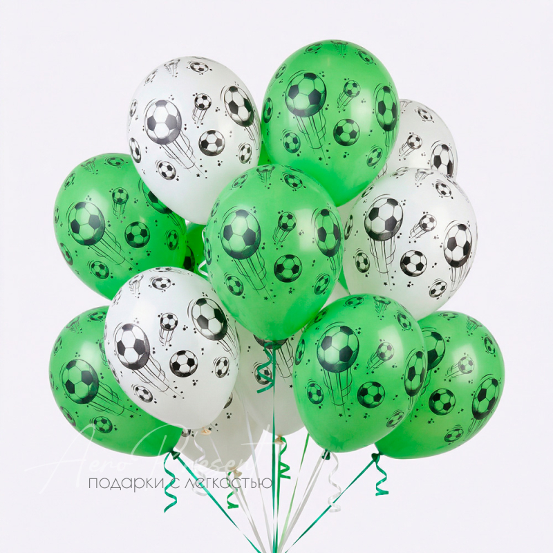 Яркие шары с принтом футбольных мячей создают атмосферу стадиона и добавляют азарт любому празднику.