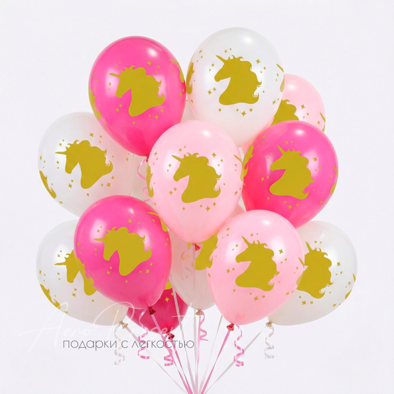 Очаровательные воздушные шары с золотыми силуэтами единорогов на розовом, кремово-белом и светло-розовом фоне создадут атмосферу настоящей сказки! Такой яркий букет — идеальный декор для детского дня рождения, тематической вечеринки или фотосессии. Шары прекрасно подойдут для маленьких мечтателей и любителей волшебства, наполнят праздник радостью и ощущением чудес.