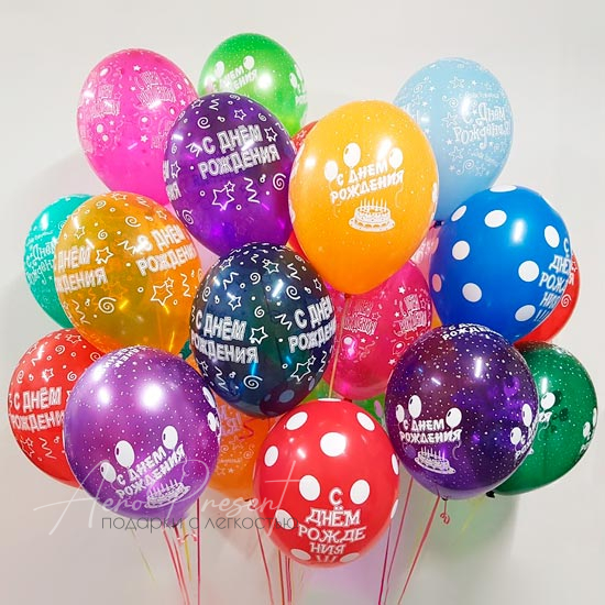 Микс из шаров с рисунками типа пастель, металлик и кристалл на тематику дня рождения.