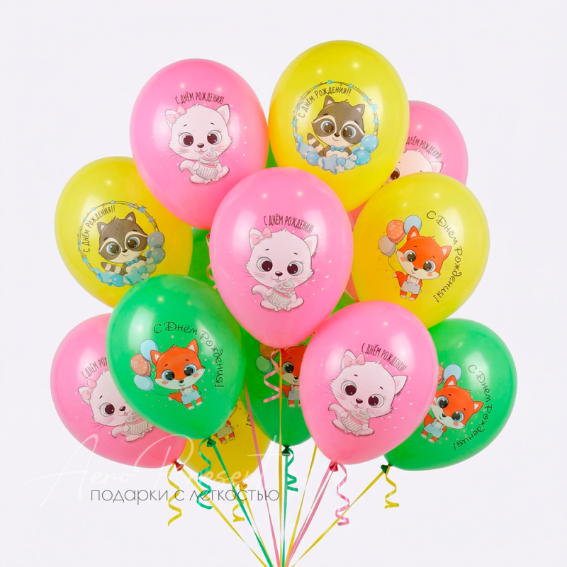 Яркие шары с милыми зверятами и надписью «С Днём Рождения!» мгновенно создают праздничное настроение и вызывают восторг у детей.