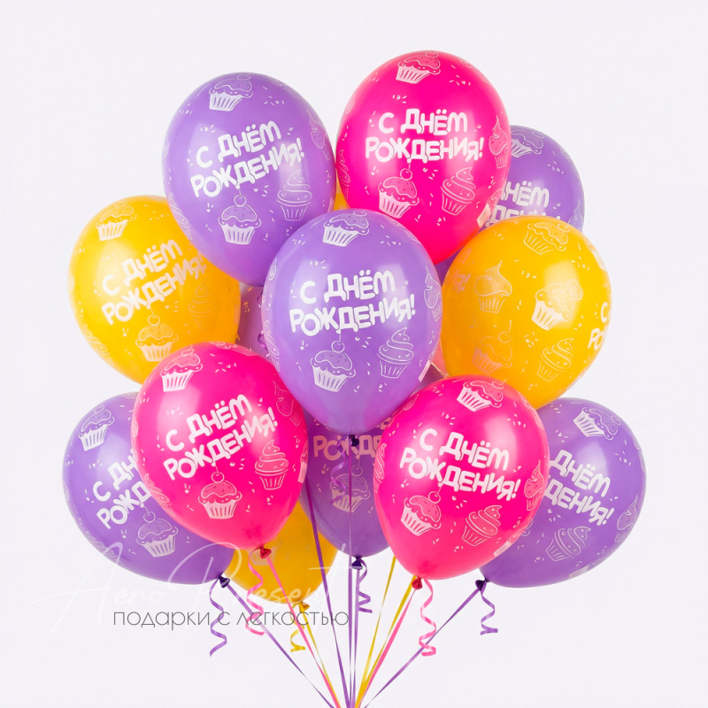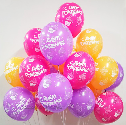 Яркие шары с капкейками и надписью «С Днём Рождения!» мгновенно создают праздничное настроение и смотрятся очень эффектно.