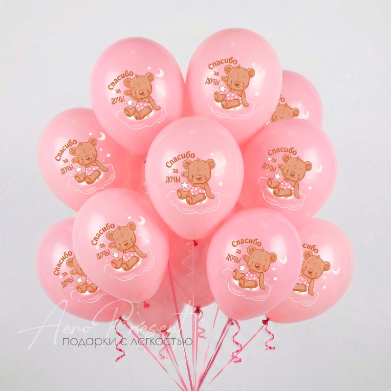 Нежные розовые шары с трогательным принтом медвежонка и надписью «Спасибо за дочку» создадут атмосферу счастья и умиления в такой важный день. Идеальны для встречи мамы и малышки из роддома, оформления семейного праздника или фотосессии с новорождённой. Милый дизайн наполнит событие особой теплотой и радостью.