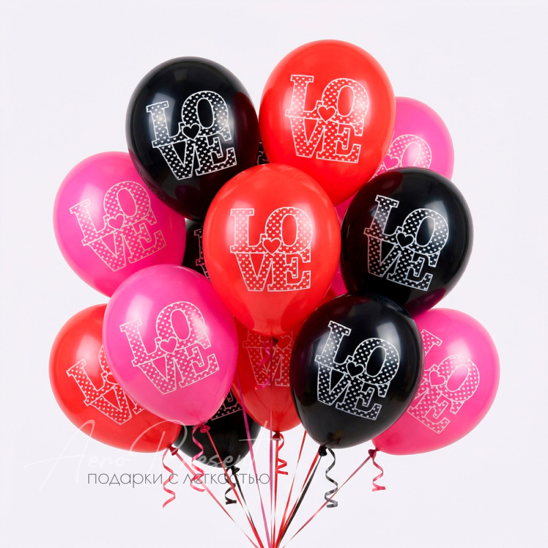 Яркие шары с крупной надписью LOVE создают романтичную атмосферу и выглядят очень эффектно.