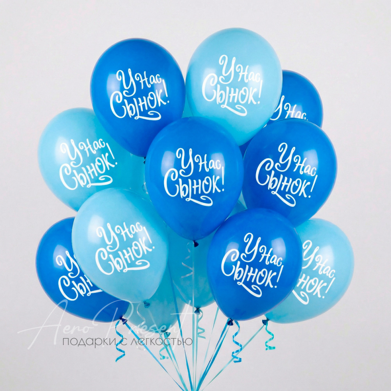 - Яркие синие и голубые шары с надписью «У нас сынок!» превращают любой день в настоящий праздник и отлично подходят для встречи мамы и малыша из роддома, оформления baby shower или фотозоны. Такие шары дарят радость, подчеркивая важное событие в семье.