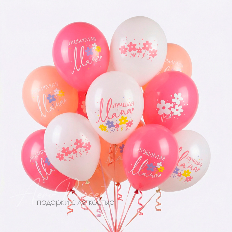 Яркие и нежные воздушные шары с надписями «Любимая мама» и «Лучшая мама», а также милыми цветочными принтами — идеальный способ порадовать самого дорогого человека! Такой букет подойдёт для подарка на День матери, 8 марта, день рождения или просто для того, чтобы выразить свою любовь и благодарность маме. Тёплые оттенки и приятный дизайн создадут атмосферу уюта, заботы и радости.