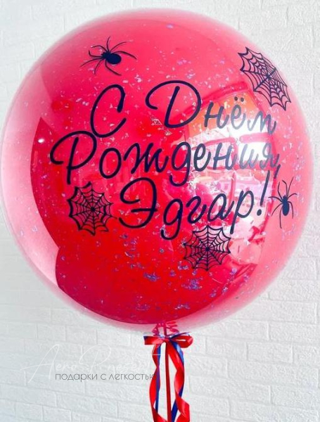 Оригинальный стеклянный шар с наполнением блестками и дизайнерской надписью на нем.