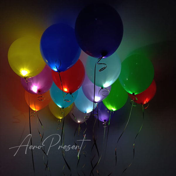 Время свечения светодиода до 6-8 часов с момента надутия шара, постепенно происходит угасание свечения. На изображенном товаре приведено схематическое отображение свечения шара, что в реальных условиях может не быть достигнуто.