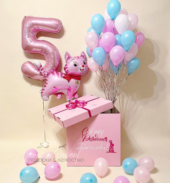 - Наполнение коробки выбранным количеством МИНИ шариков, помещается внутрь до 70 штук, по запросу наш менеджер рассчитает стоимость набора с наполнением шарами стандартного размера;