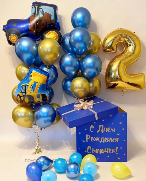- 2 букета состоящие из 2 фольгированных тематических шаров и 20 шаров хром;
