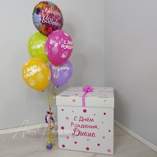 ✨️Коробка сюрприз с поздравительной надписью украшенная бантом (размер коробки 60*60 см.);