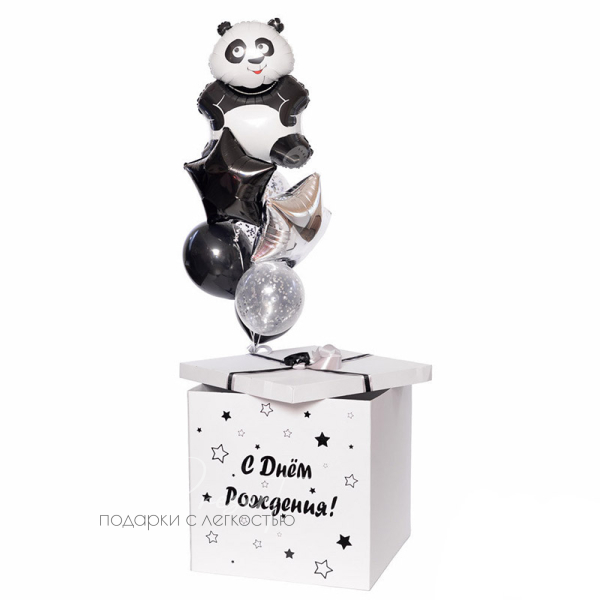 Обработка шаров для длительного полета, надпись на коробку и бант добавляются в заказ опционно и в базовую стоимость не включены