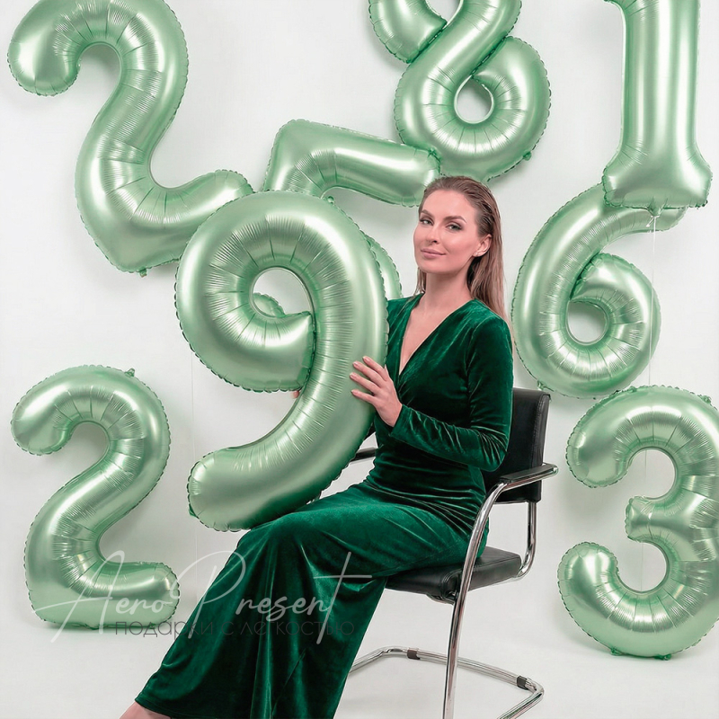Фольгированная цифра цвета авокадо.