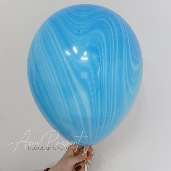 Воздушный шар с гелием с мраморным сине-голубым окрасом