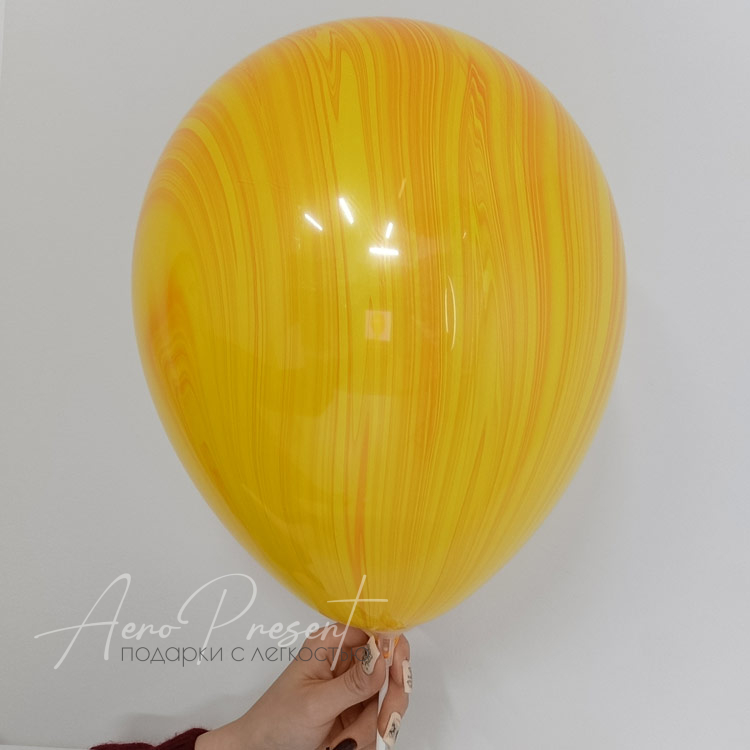 Воздушный шар с гелием с мраморным желто-оранжевым окрасом