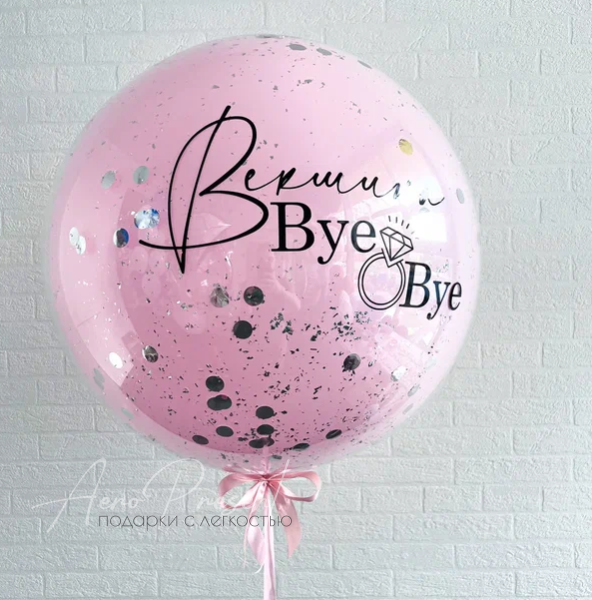 Стеклянный шар гигант с наполнением блестками и надписью на нем, размер шара 60-70 см.