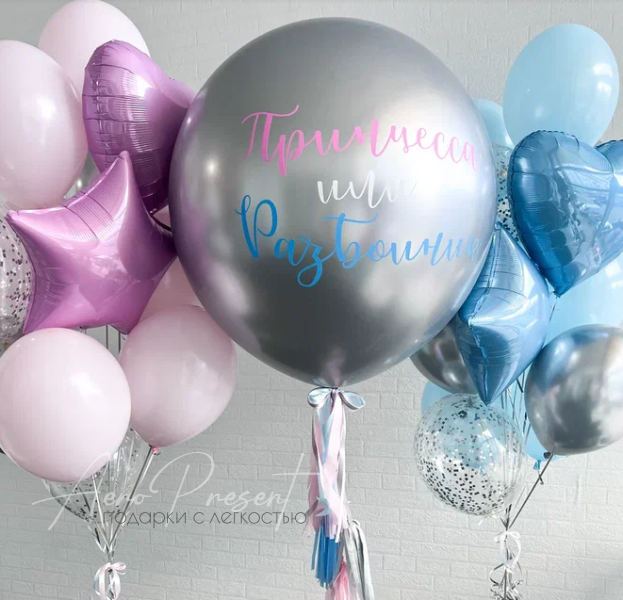 - Шар гигант с наполнением конфетти, маленькими шариками и надписью на нем
