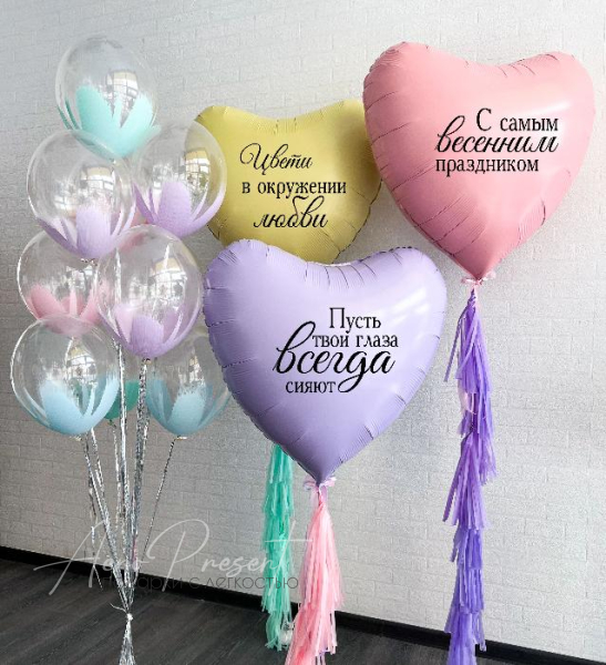 - 3 фольгированных гигантских сердца 90 см с дизайнерским нанесением;