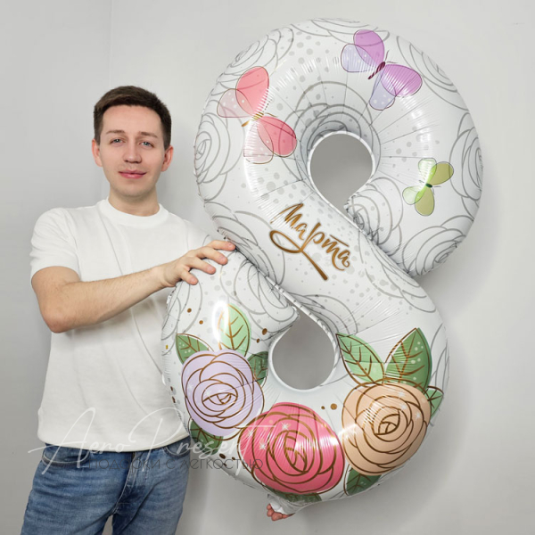 Фольгированная цифра с гелием, высота 90 см.