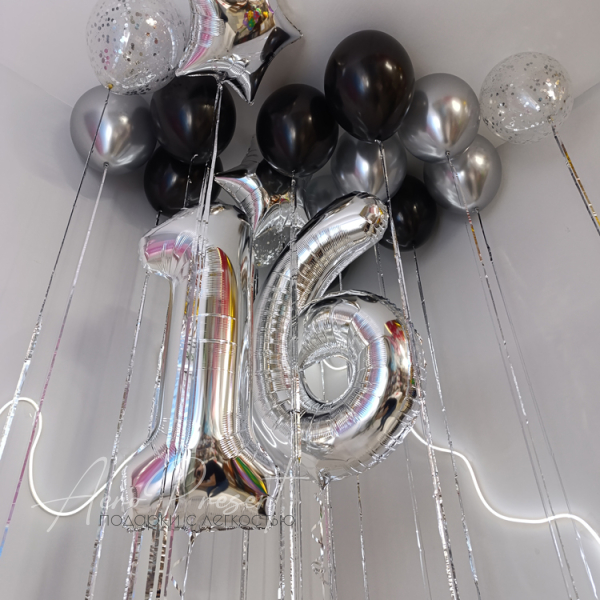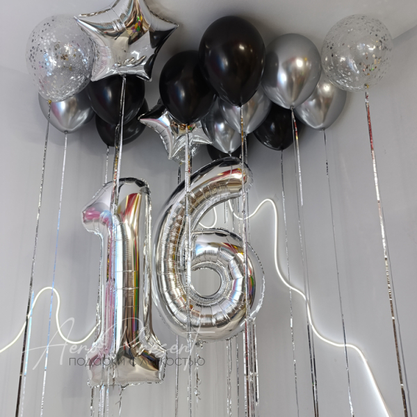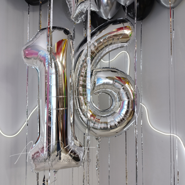 - Фольгированные шары серебряного цвета в виде цифр