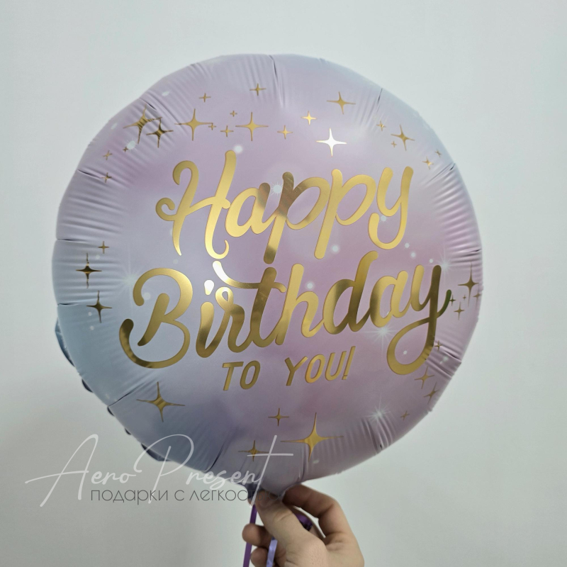 - Фольгированный шар с гелием круглой формы с надписью "Happy Birthday" в цвете сиреневого градиента