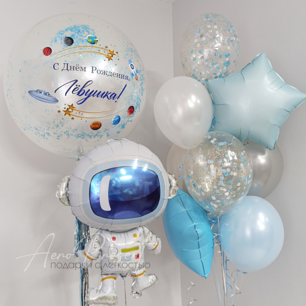 ✨️Стилизованный шар гигант с дизайнерским нанесением и поздравительной надписью;✨️Фигура космонавта;