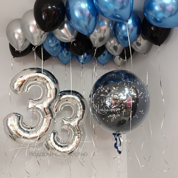 - 20 шаров для оформления потолка в черных, синих и серебристых оттенках