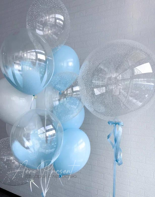 - Шар прозрачный гигант с декоративным наполнением, имитирующим снег;
