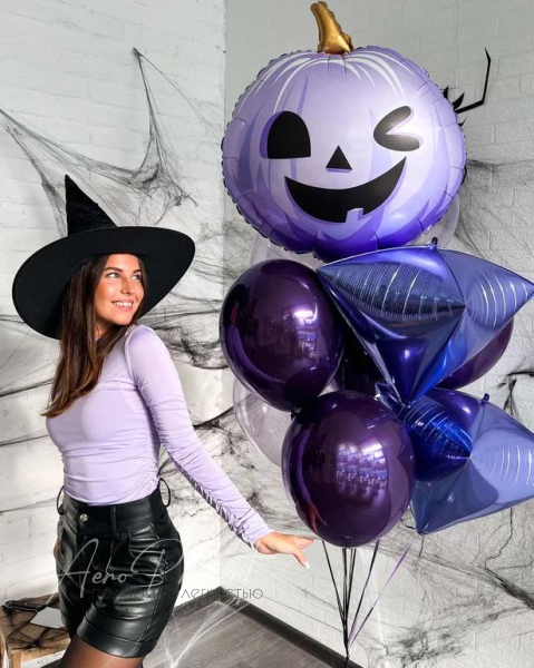 - Фольгированный тематический шар в виде лавандовой тыквы;