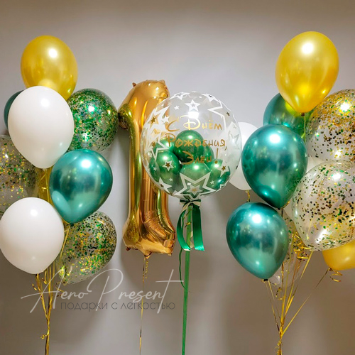 2 композиций на грузе (3 шара с конфетти, 3 шара хром, 4 шара премиум без рисунков);