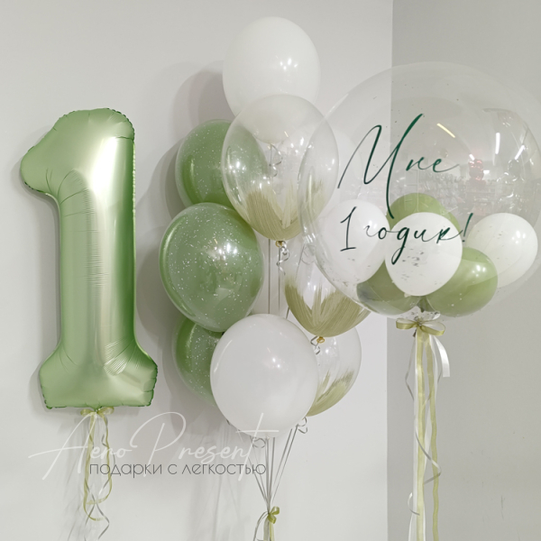- 3 воздушных шара с эффектом стекла и наполнением блестками;