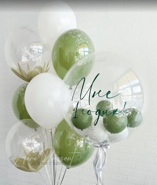 - 3 воздушных шара с эффектом стекла и наполнением блестками;