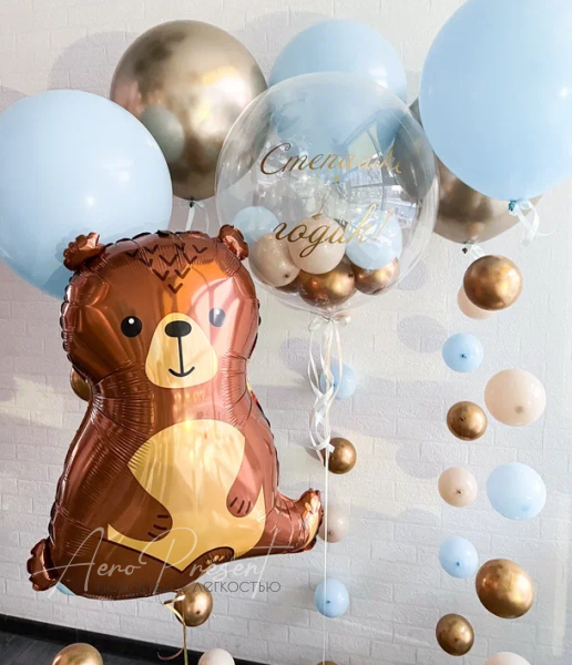 - Шар Бабблс с наполнением маленькими шариками и надписью на нем