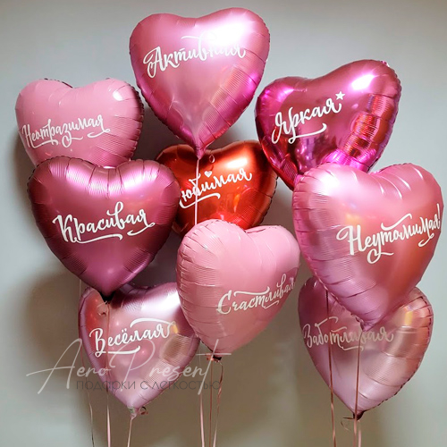Набор состоит из девяти фольгированных шаров с надписями на грузе, возможно изготовление с индивидуальными надписями