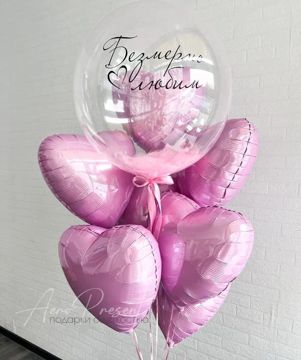 Оригинальная композиция с шаром баблсом, перышками с надписью, по запросу нанесем на шар любую Вашу надпись, собственное производмтво позволяет сделать это в максимально кратчайшие сроки, а это значит, что даже самые сложные заказы мы сможем доставить уже сегодня!