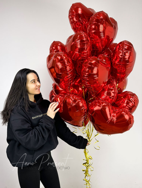 Воздушные шары с гелием в форме сердец, размер сердца 33-35 см.