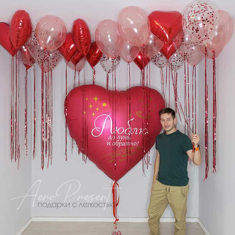Набор с гигантским сердцем 140 см. и 25 шарами для оформления потолка