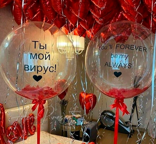В стоимость набора входит 30 фольгированных сердец, 2 шара с надписями, фольгированная надпись LOVE
