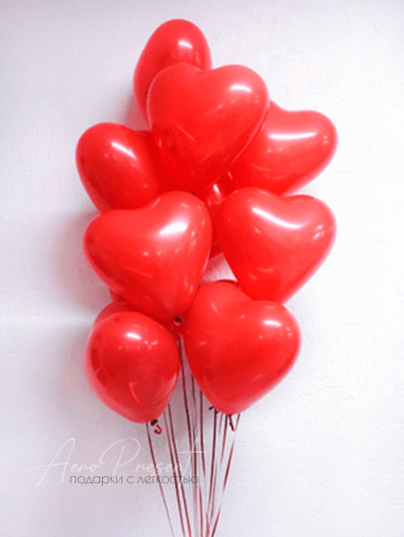 Воздушные шары с гелием в форме сердец.